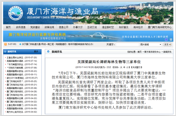 廈門海洋與漁業(yè)局吳國梁副局長來我司調(diào)研